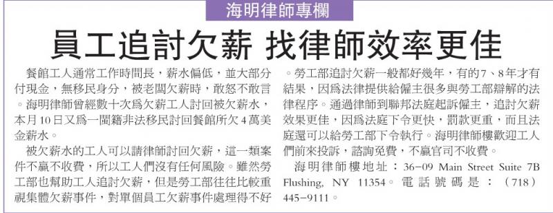 • “明报”,"侨报" 系列,每周刊出, 读者最爱-----海明律师专栏